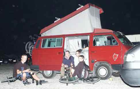 Als ich wieder auf dem Zeltplatz ankam war trotz des Regens gute Stimmung! Unser VW Bus war voll besetzt mit Berlinern!