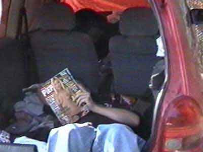 total kaputt vom Tag. Tino konnte diesmal irgendwie nicht so gut schlafen in meinem kleinen "Corsa-wohnmobil". Am nächsten
